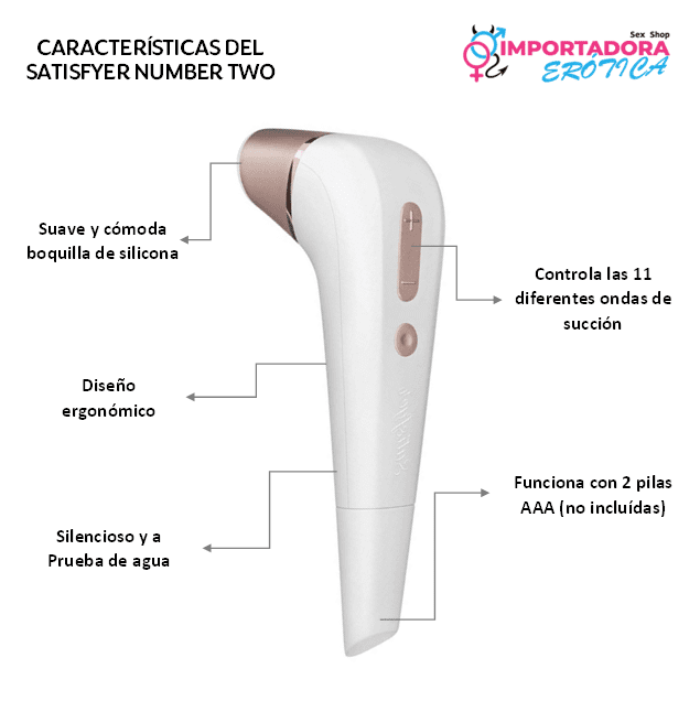 • Satisfyer number two tiene cabezal con boquilla de silicona lo que lo convierte en un juguete de uso seguro